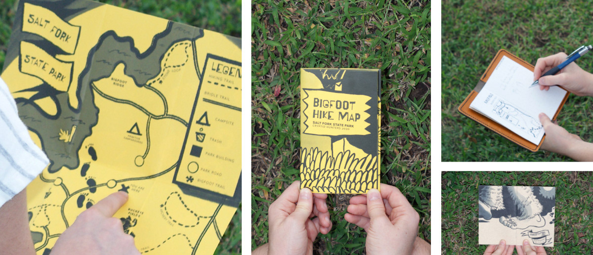 An event invitation aimed at children ages 8-10 for a weekend hunting the cryptid Bigfoot at Salt Fork State Park in Ohio.